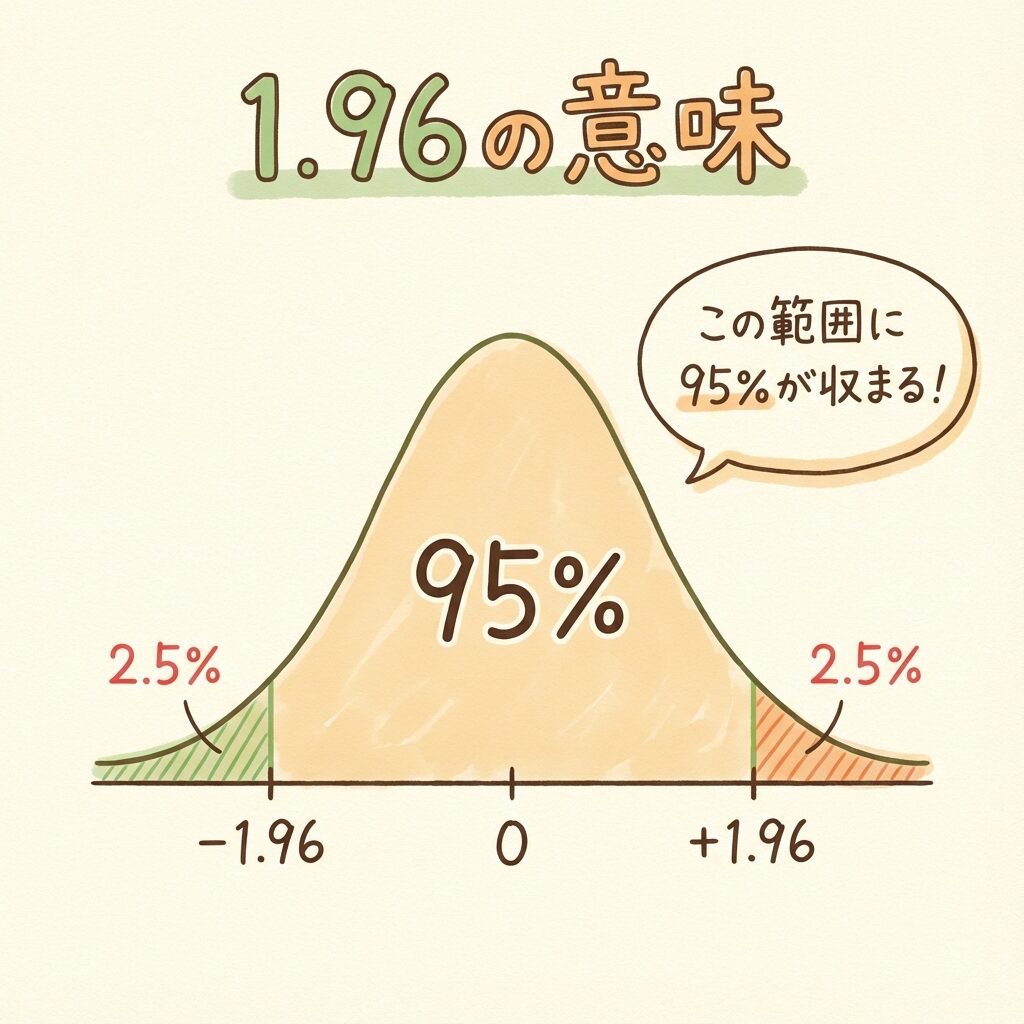 統計学を勉強していると、何度も「1.96」という数字に出会いますよね。
