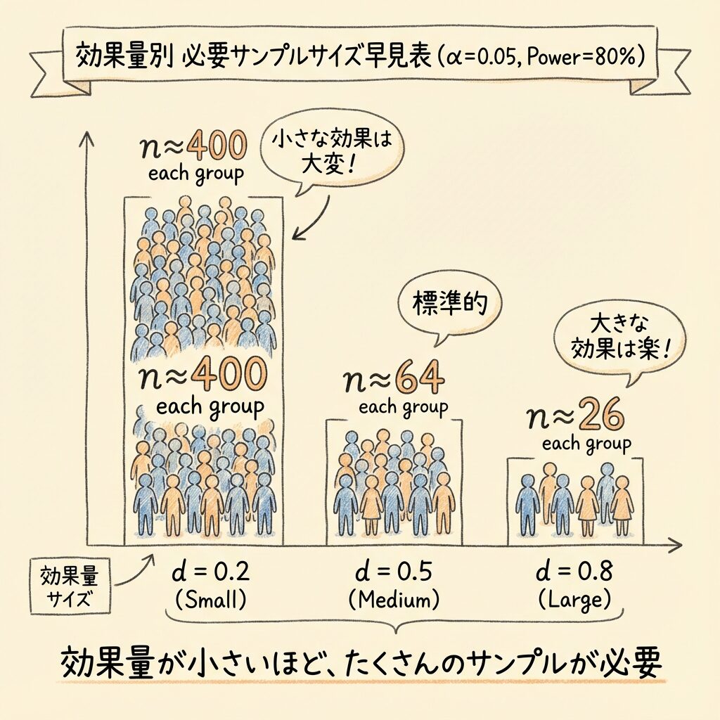 📊 【便利】効果量別の必要サンプルサイズ早見表