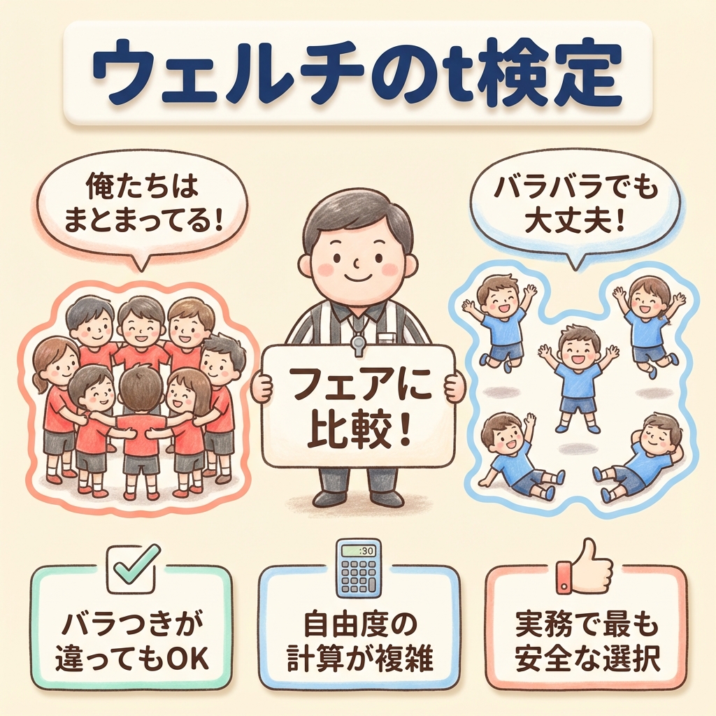 | 帰無仮説 | 「差がない」「効果がない」という仮説。検定では、これを棄却できるかどうかを判断する。 |