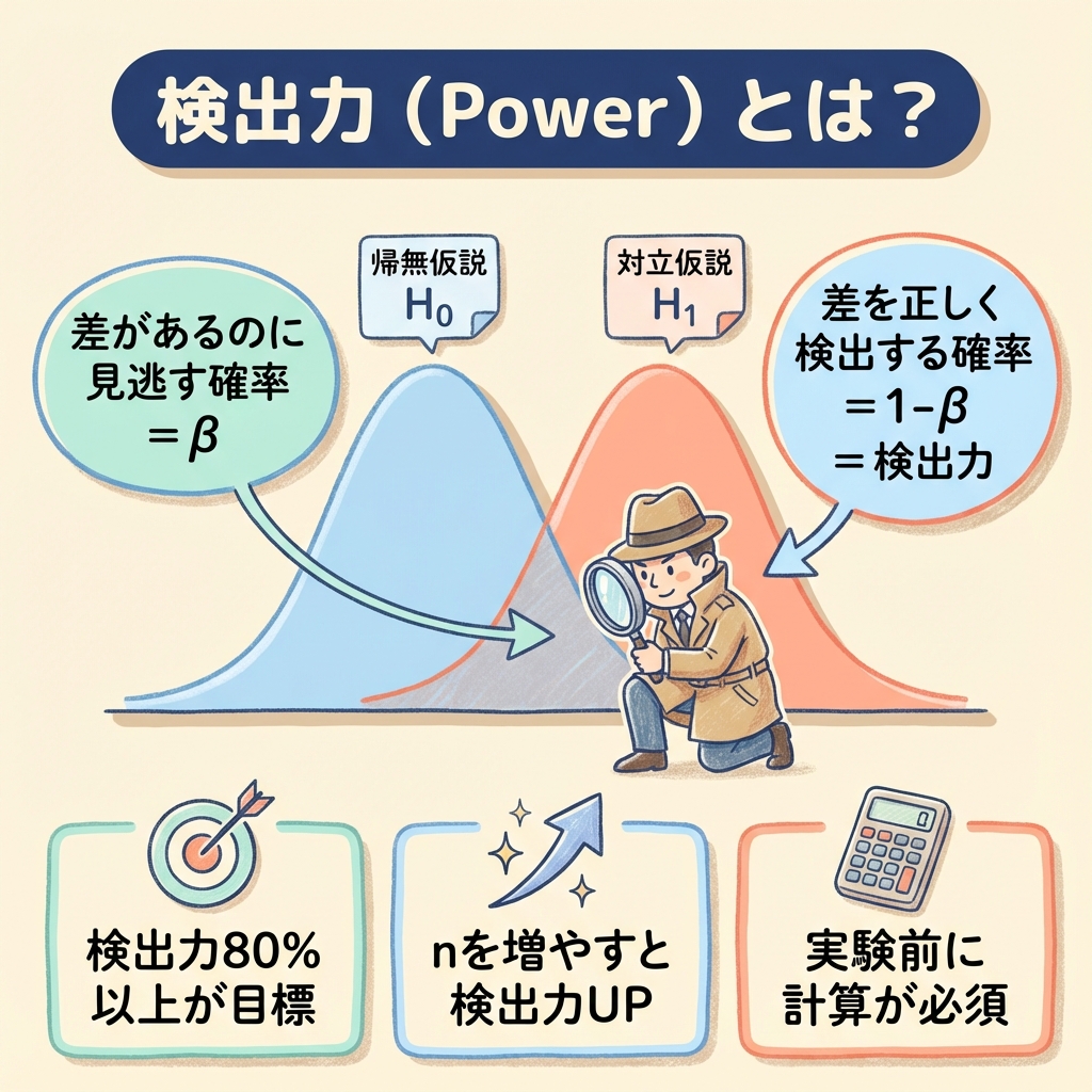 確かにサンプル平均ではB法の方が小さかったですが、それは「偶然の範囲内」の差であり、「B法が本当に優れている」と結論づけるには証拠不十分です。
