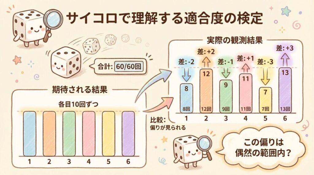 【完全図解】適合度の検定とは?|サイコロは本当に公平?を統計で確かめる方法