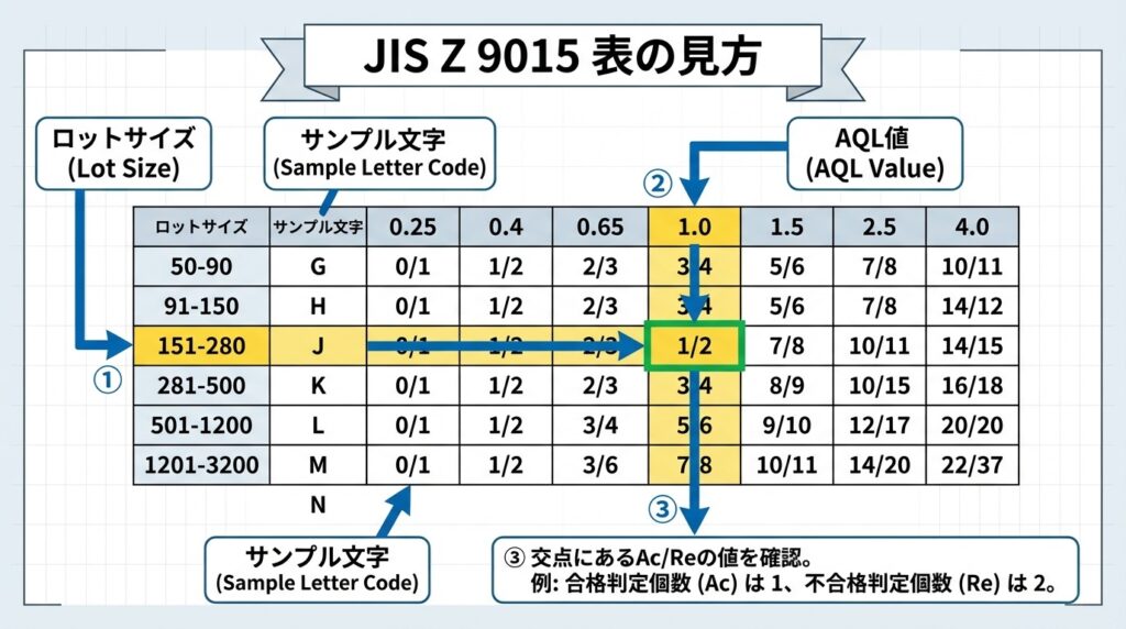 安心してください。この記事を読めば、明日から自信を持って表を使えるようになります。実は、JIS Z 9015の表は「たった3ステップ」で読めるのです。