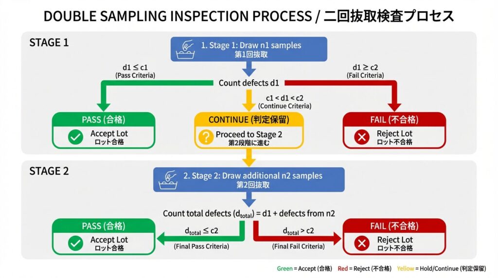 この記事を読めば、中学生でも理解できるレベルで、二回抜取検査の全体像から具体的な判定手順までが完璧にマスターできます。図をたっぷり使い、実務で即使える知識をお届けします。