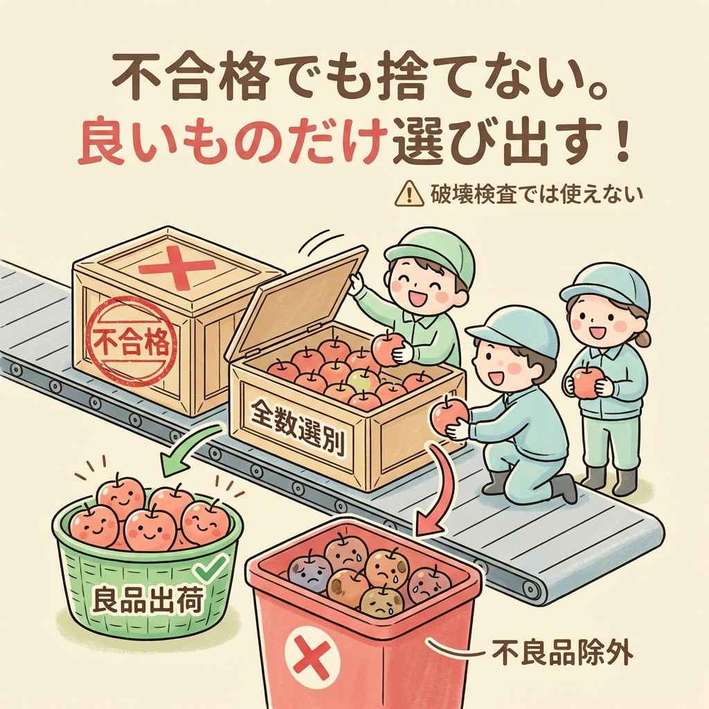 🔍 選別型:不合格なら全数検査して良品だけ出荷。モッタイナイ精神