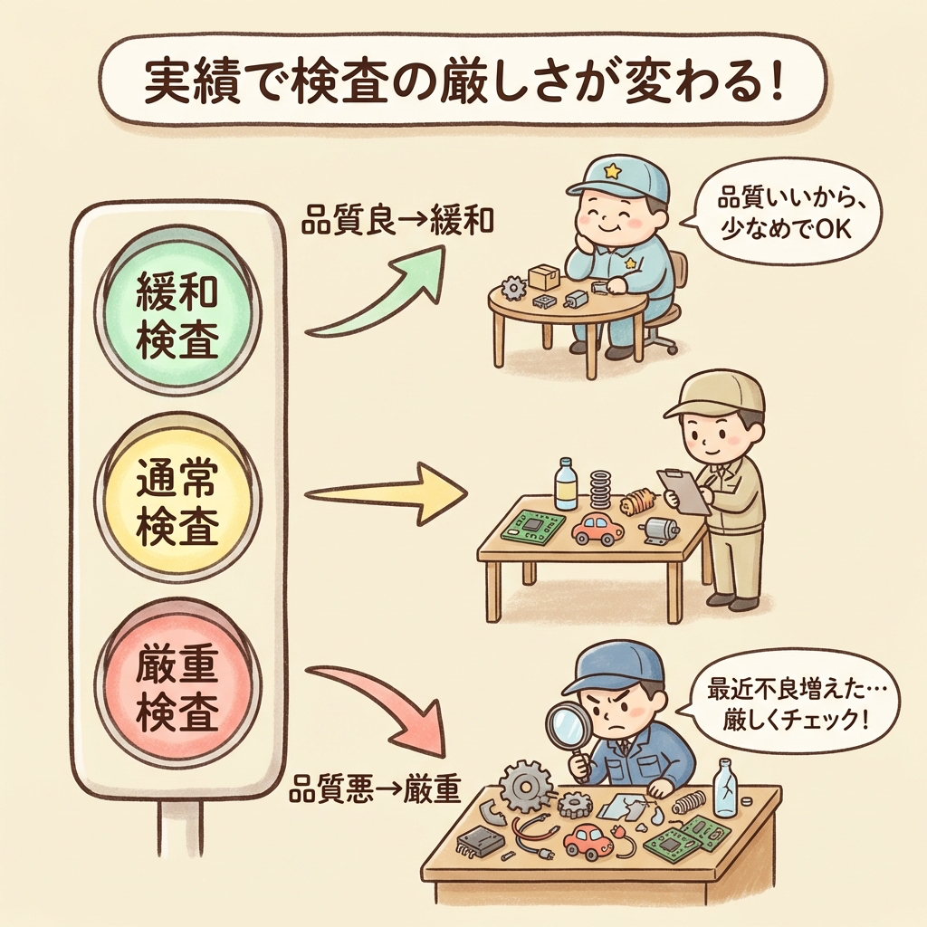 ③ 調整型抜取検査|品質実績で「検査の厳しさ」が変わる