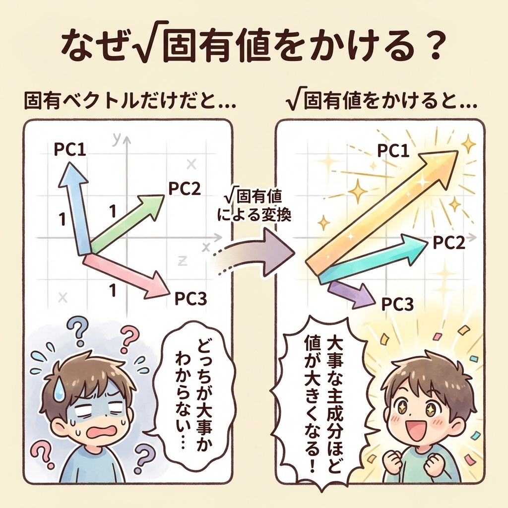 なぜ√固有値をかけるの?|重要度を反映させるため