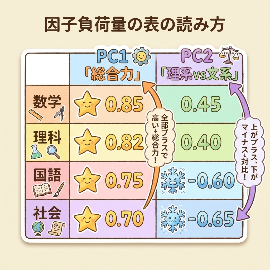 因子負荷量の表の読み方|主成分の「意味」を見抜く
