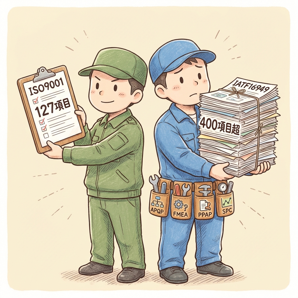 自動車部品メーカーの品質管理部門に配属されたばかりの方や、これから取引先の要求でIATF16949の取得を検討し始めた方にとって、「ISO9001とIATF16949の違い」は最初にぶつかる壁です。