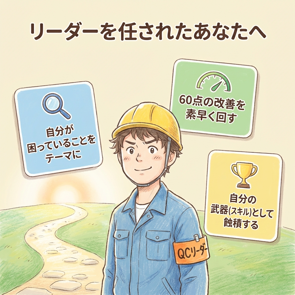 「QCサークルをやると評価が上がる」と全員が実感できれば、リーダーのなり手は自然と増えます。逆に、成果を評価に反映しないなら、どんなに「やる気を出せ」と言っても無駄です。人は仕組みで動きます。