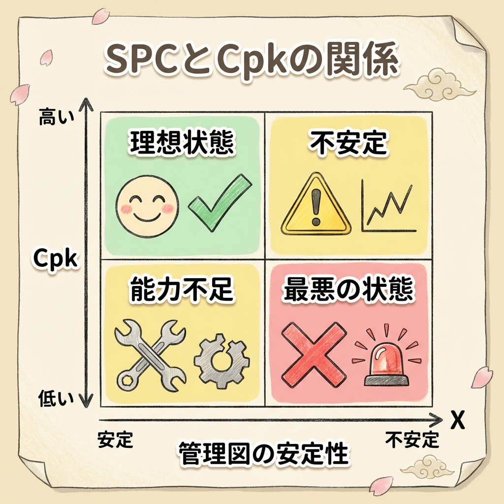 SPCとCpk/Ppkの関係──「安定」と「能力」は別物