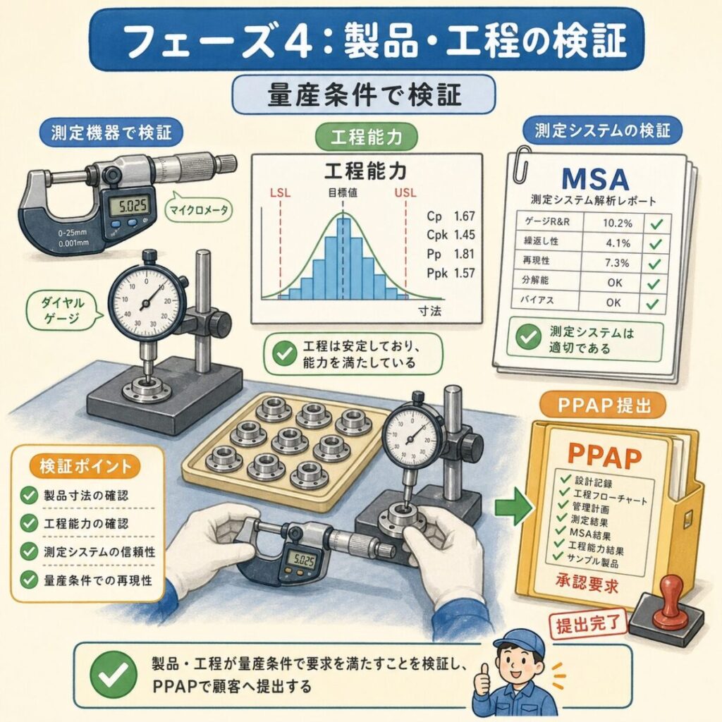 フェーズ4:製品・工程の検証 ー 量産できる証拠をそろえる