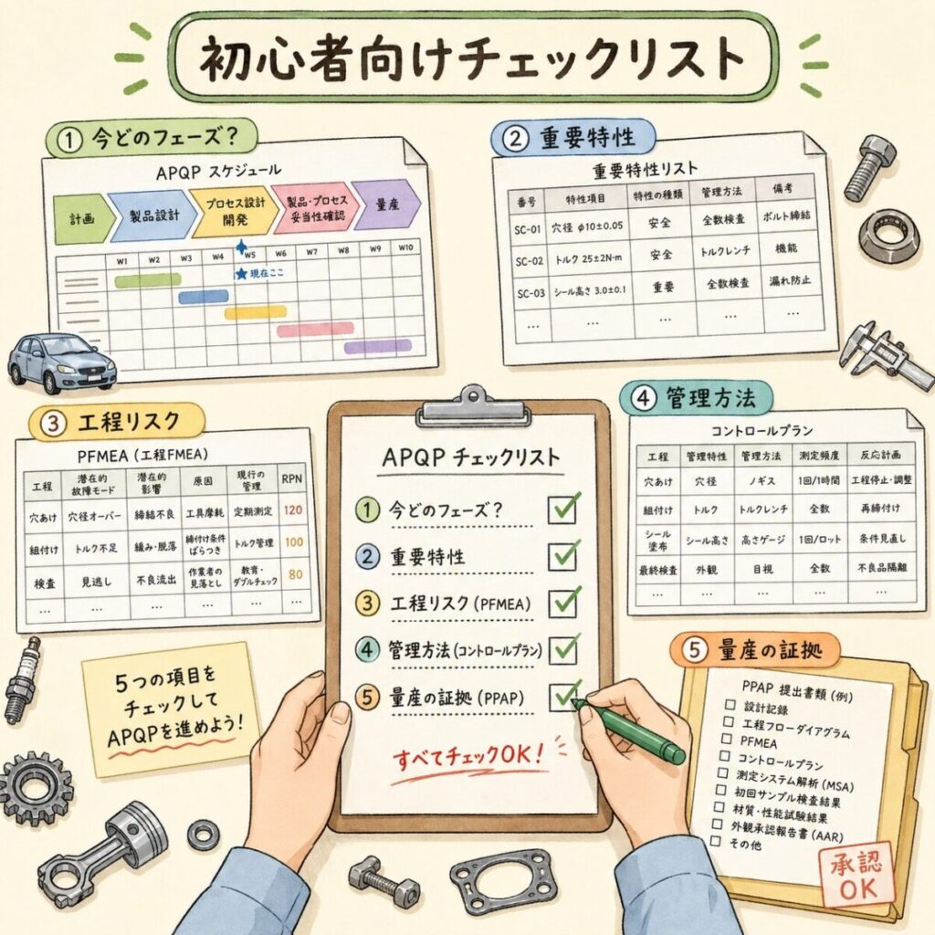 APQP会議で迷ったら、「今どのフェーズか」「次のフェーズへ進む条件は何か」を見るだけでも、理解が一気に進みます。