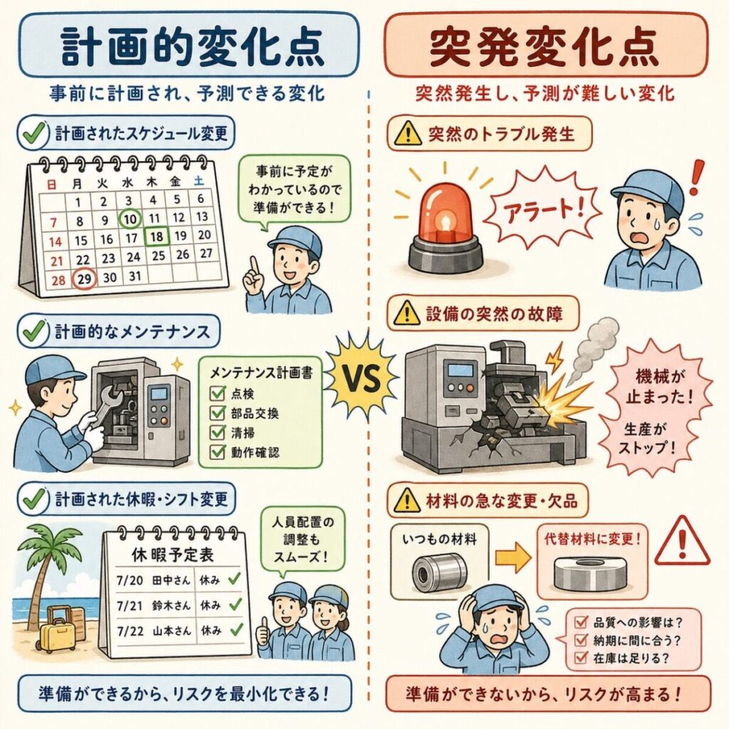 計画的変化点は、事前評価・承認・試作確認まで組み込みやすいです。