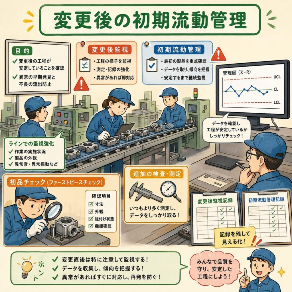 だから変更後は、通常運用にいきなり戻すのではなく、一定期間だけ追加検査や頻度アップを行う初期流動管理を入れるのが安全です。