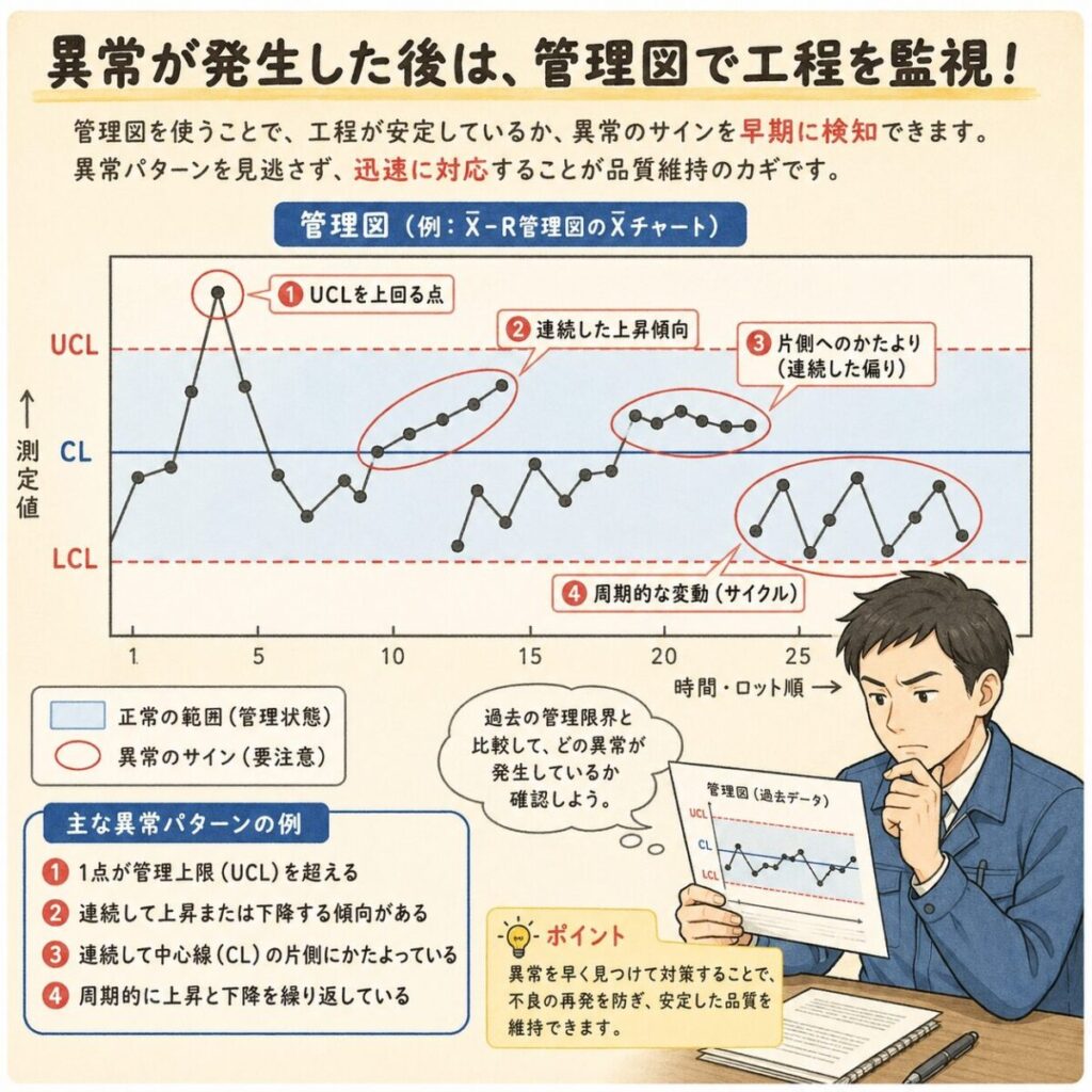 不良が出たとき、かなりの確率で見落とされるのが管理図です。