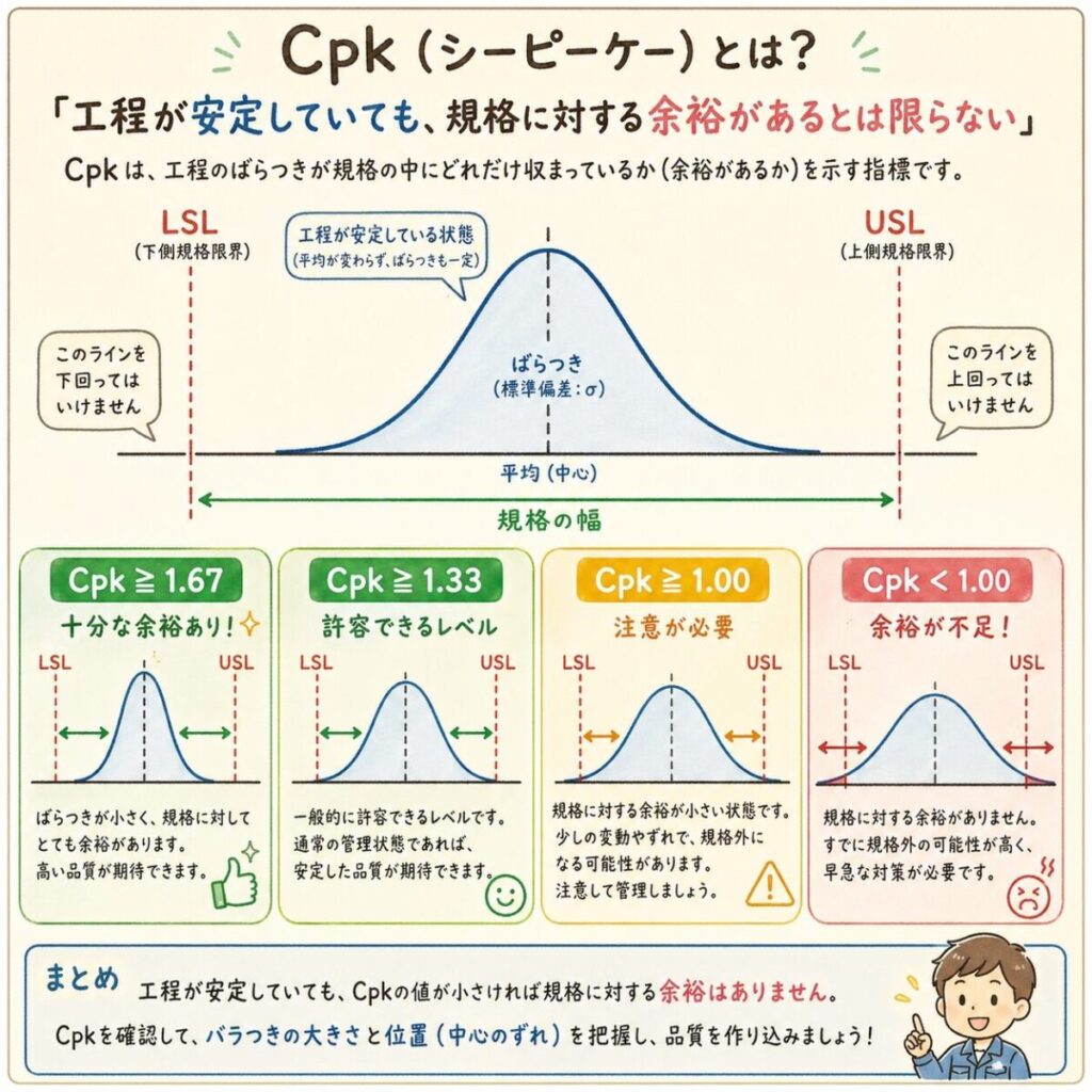 「管理図で安定確認してからCpkへ」の意味がより深くわかります。