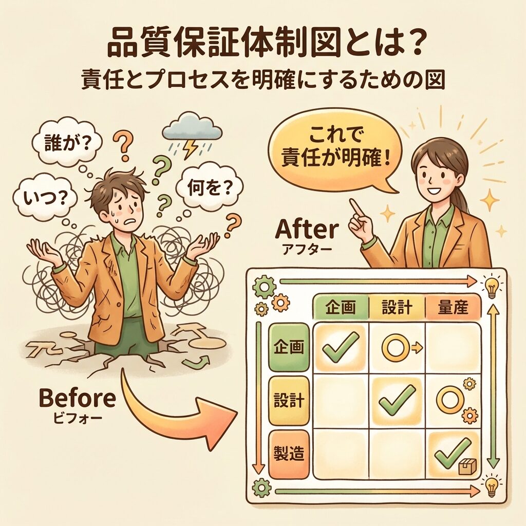 この記事を読めば、品質保証体系図の本質を理解し、QC検定1級の問題にも自信を持って解答できるようになりますよ。