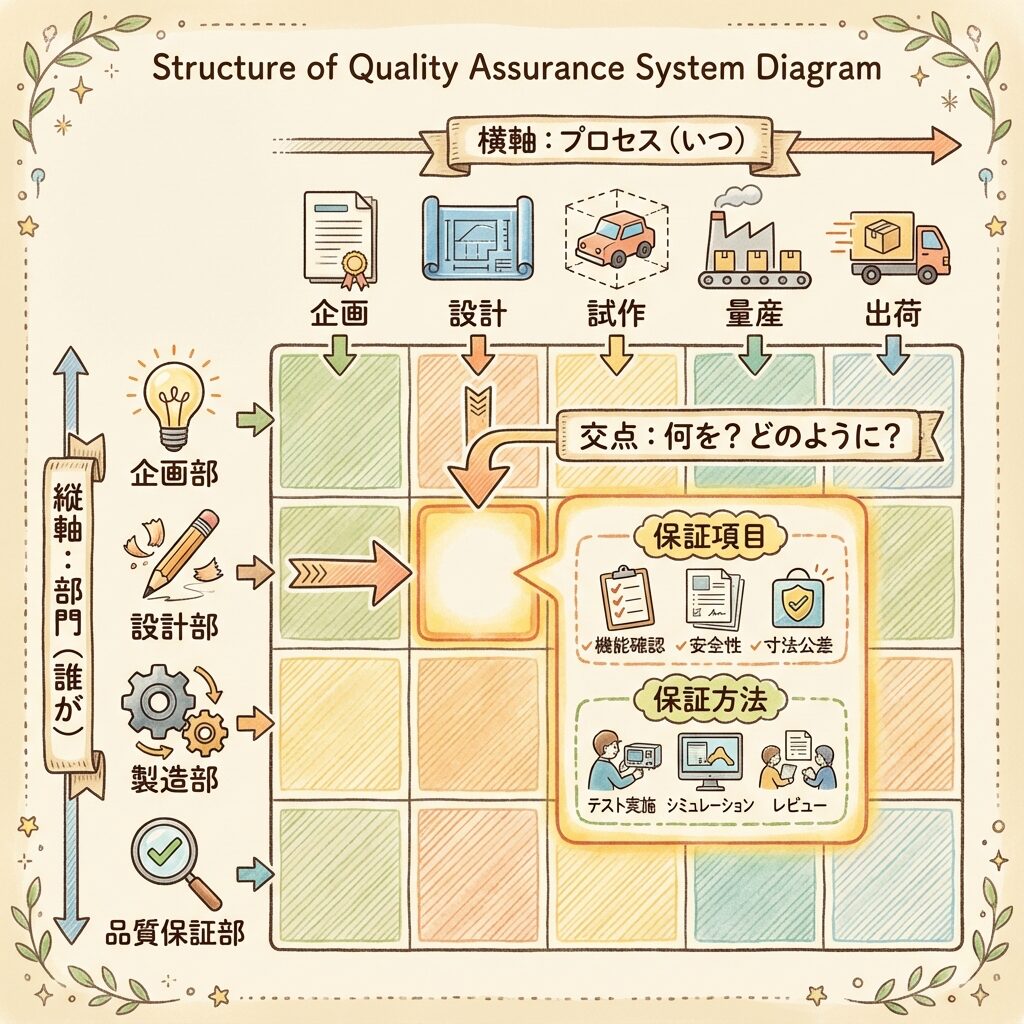 品質保証体系図の構成要素|縦軸・横軸・交点の意味