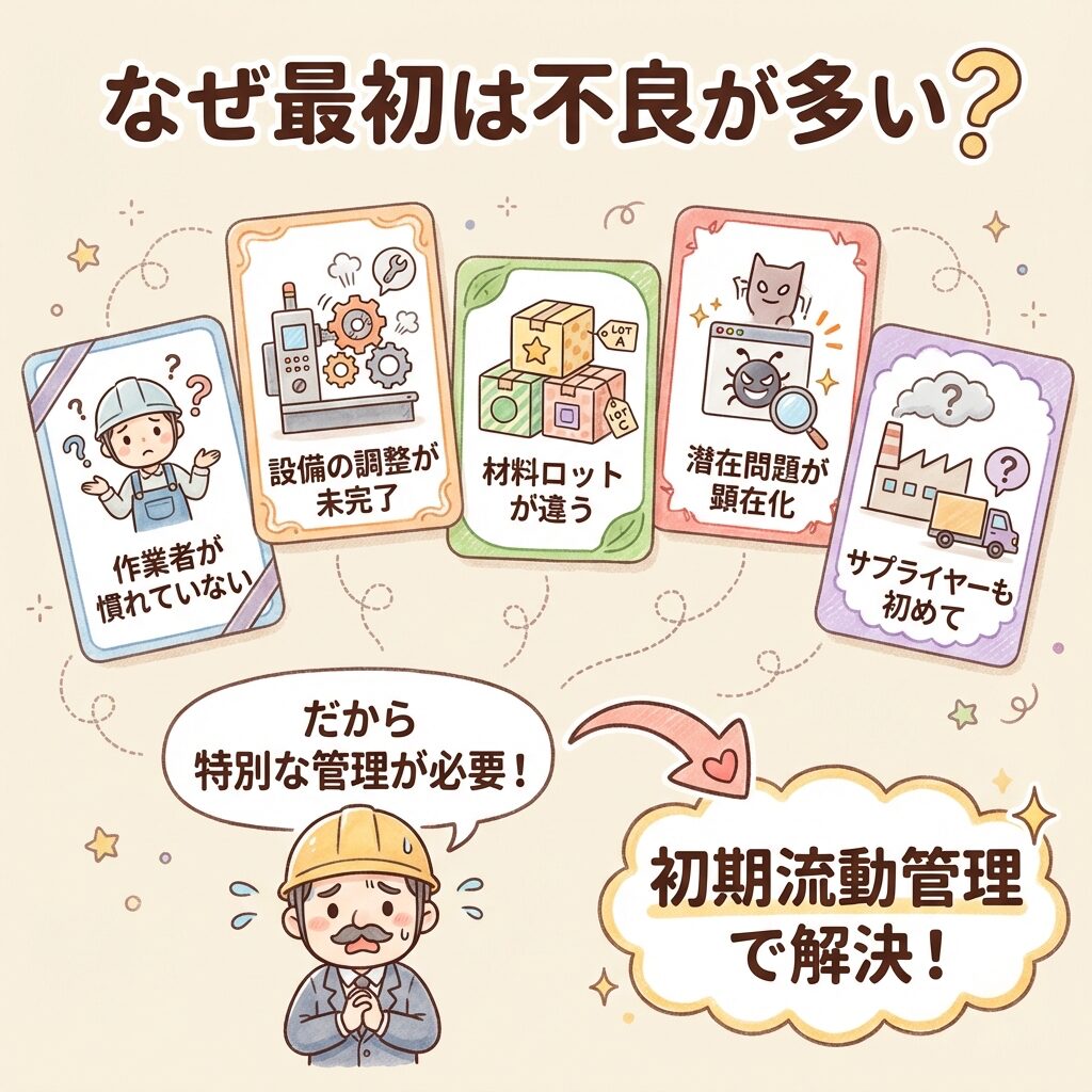 でも、なぜ最初だけ不良が多いのでしょうか?5つの理由を見てみましょう。