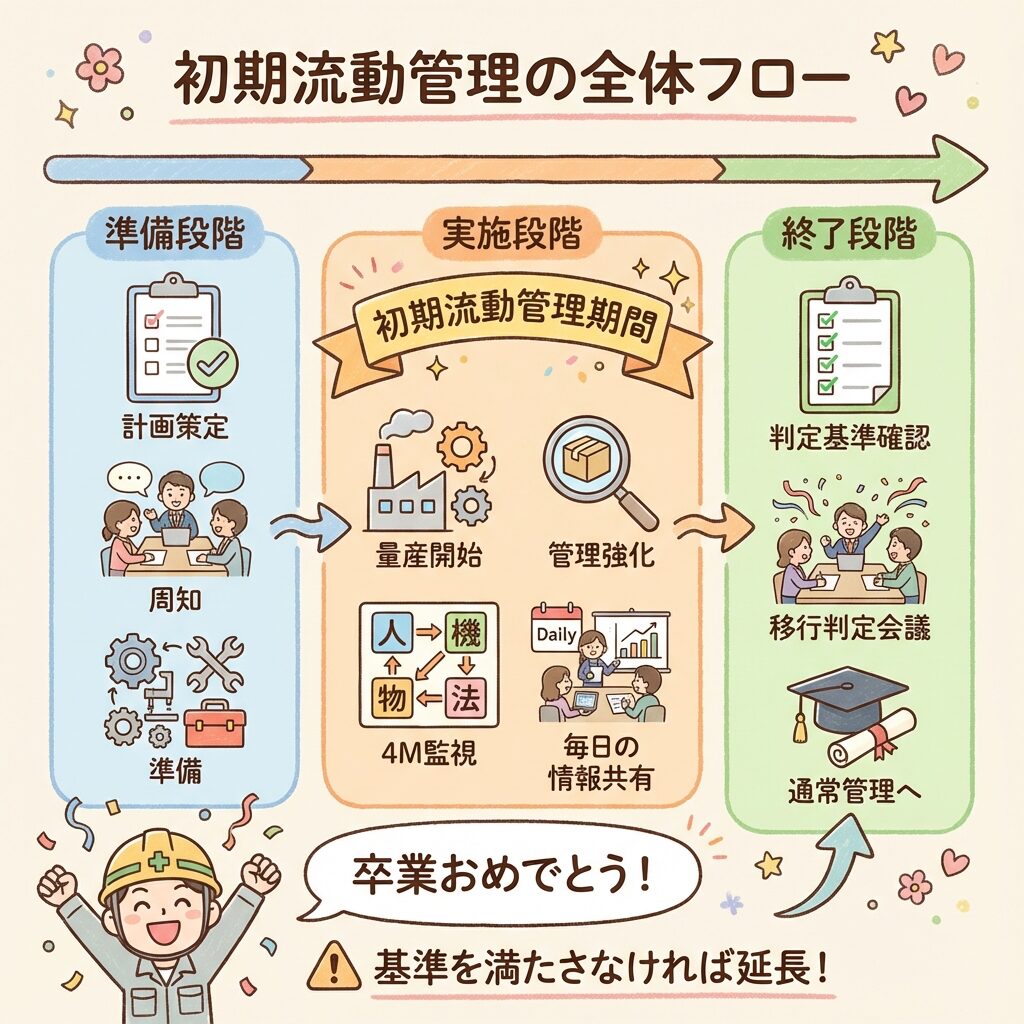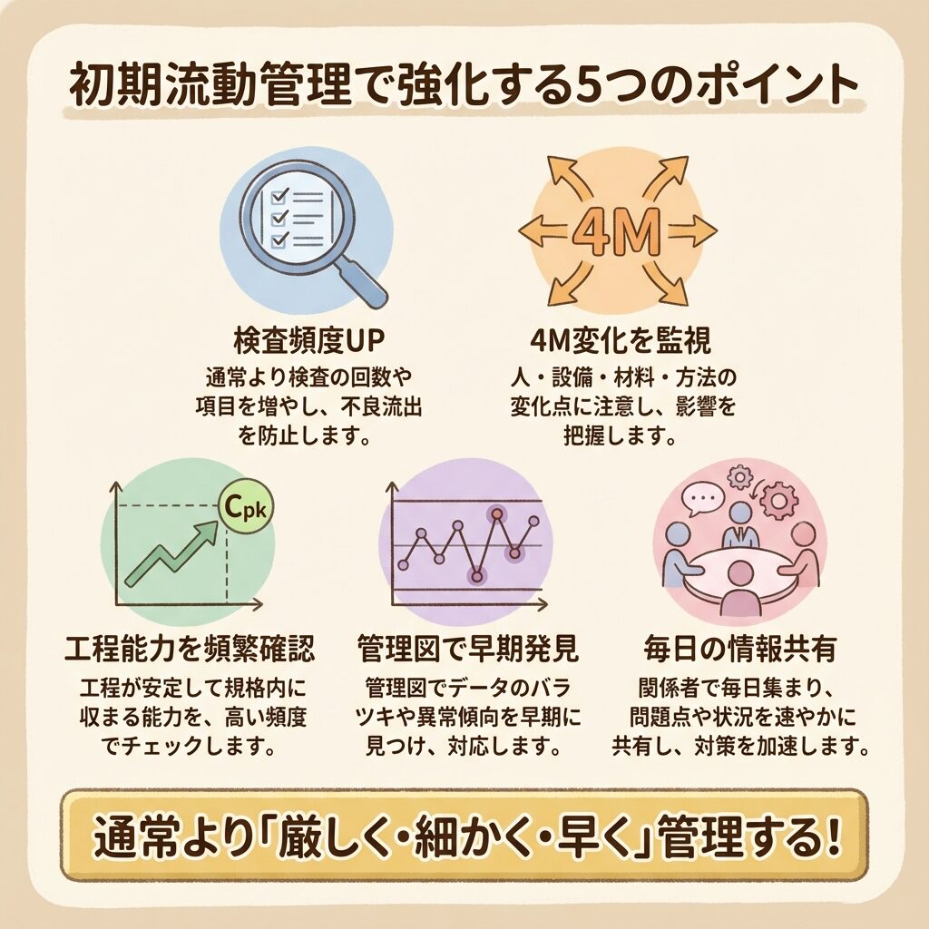 初期流動管理とは、量産開始直後の不安定な時期に行う特別な管理活動