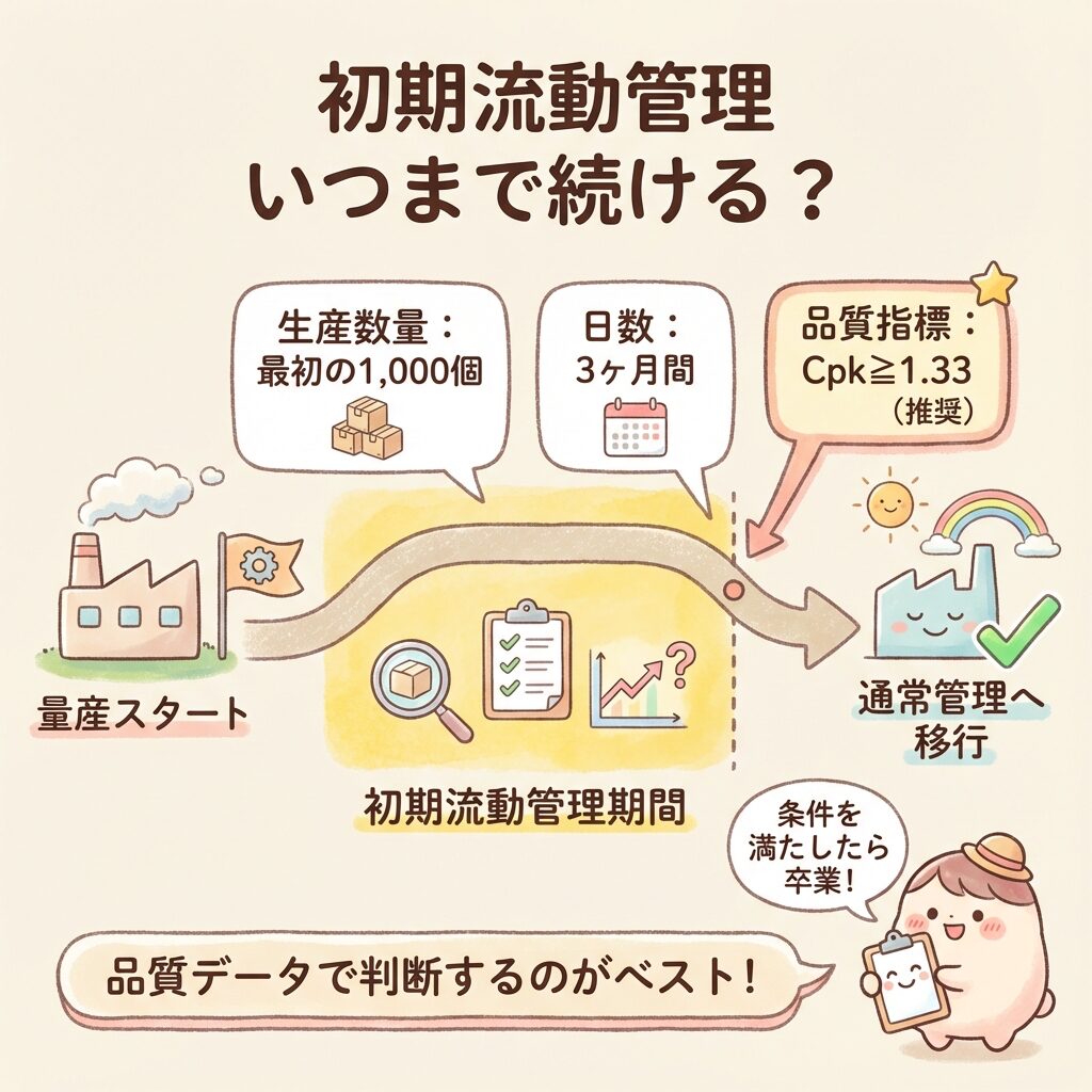 初期流動管理は、永遠に続けるわけではありません。品質が安定したら「通常管理」に移行します。
