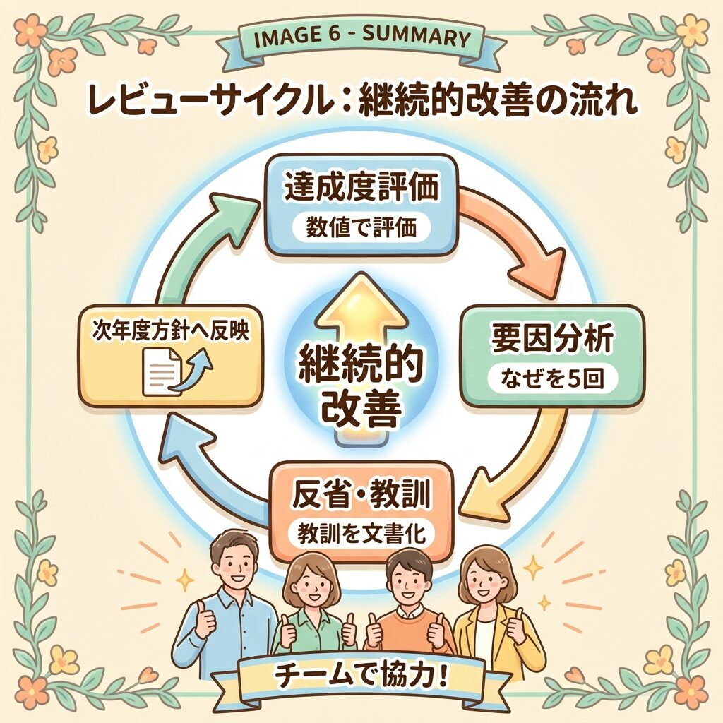 - 教訓を文書化して反映する:反省会議の結果を次年度方針に確実につなげる