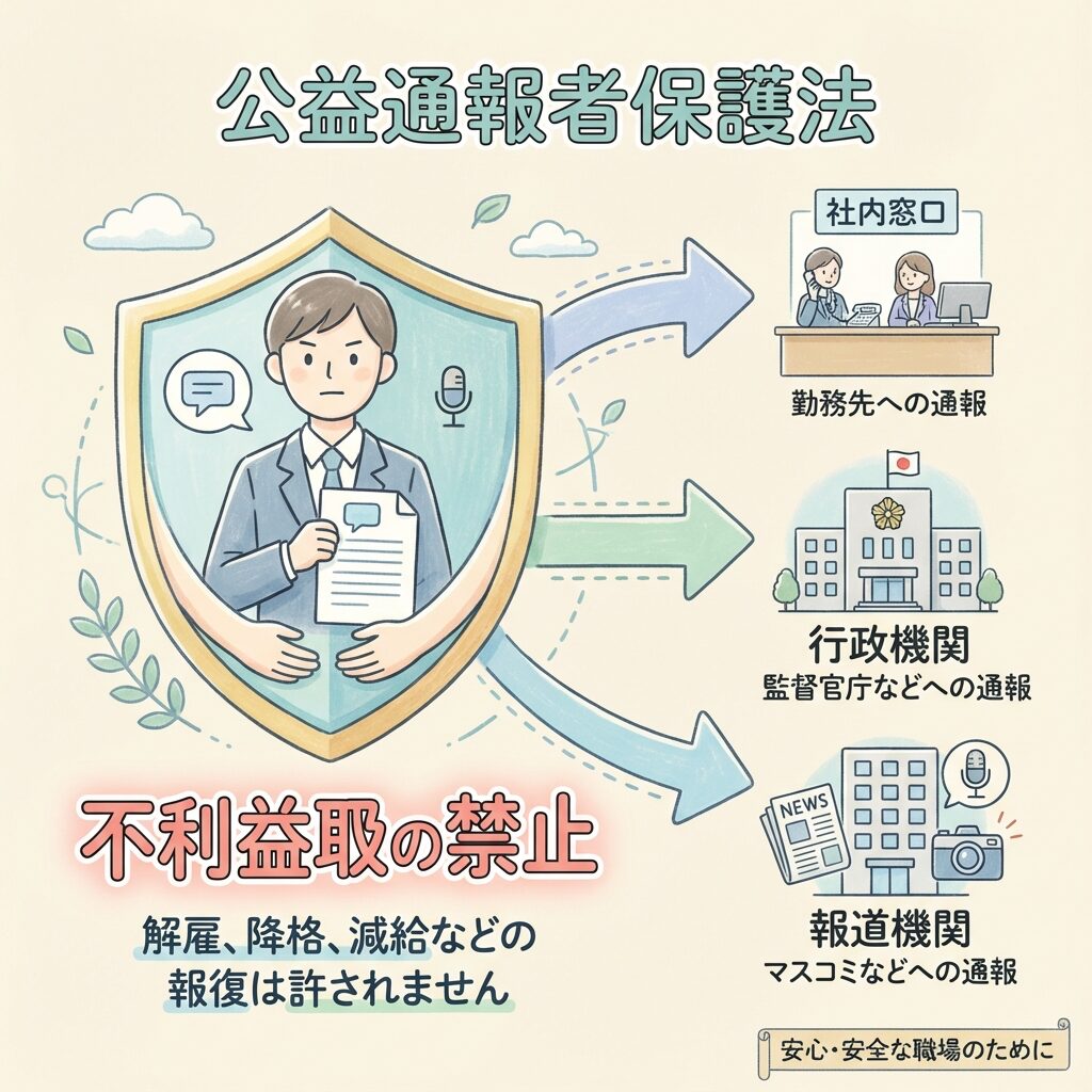 - 公益通報者保護法は内部告発者を不利益取扱いから保護する