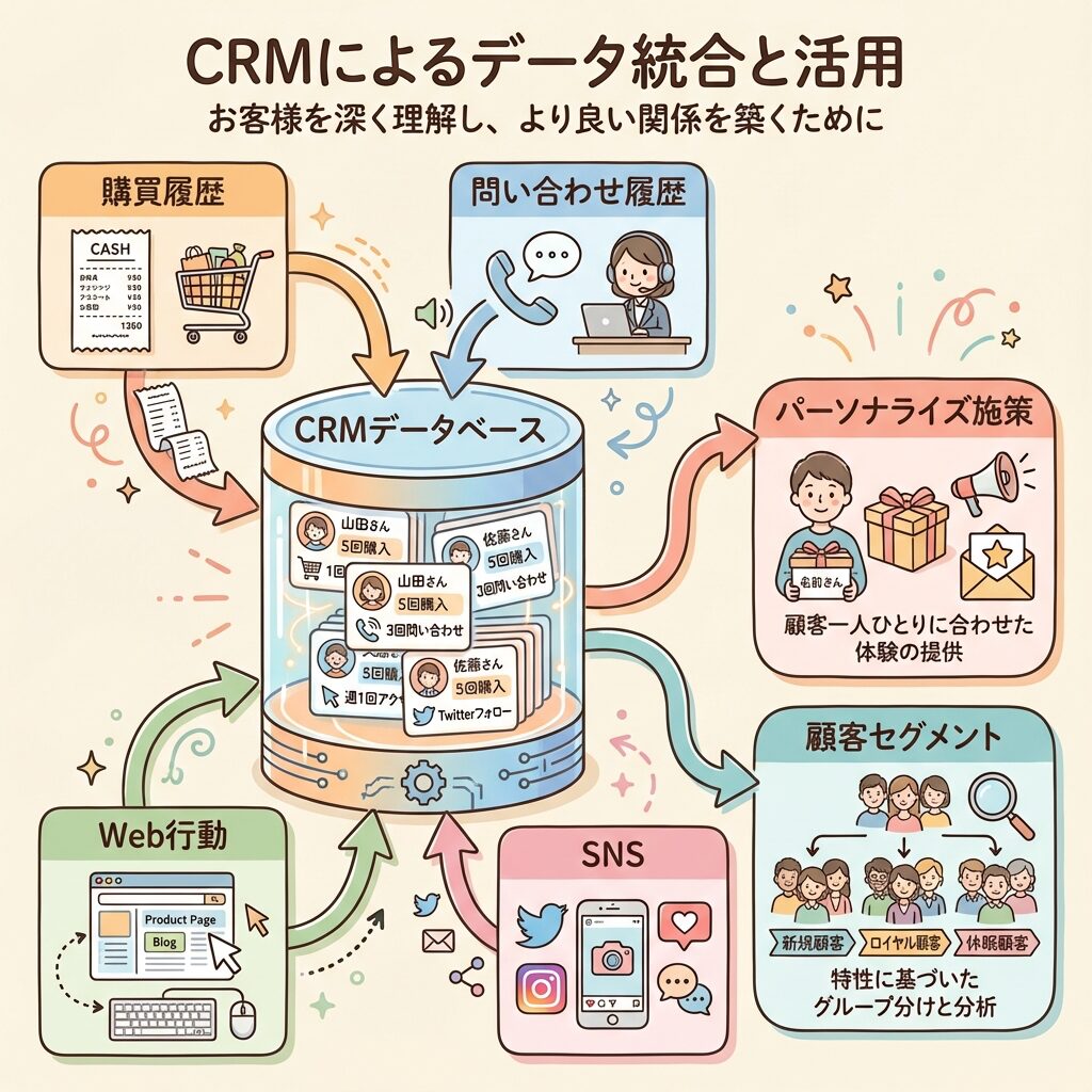 顧客との長期的な関係を構築・維持・強化するための経営戦略・手法・システムの総称。顧客データを活用して、一人ひとりに最適な対応を行い、顧客満足度とロイヤルティを高める。