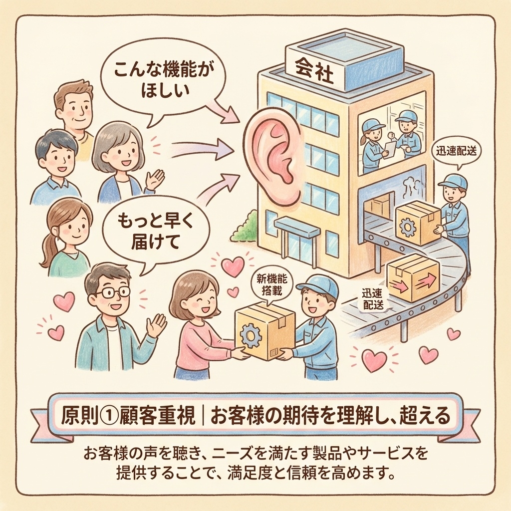 | 1 | 顧客重視 | お客様の期待に応え、超えることを目指す |