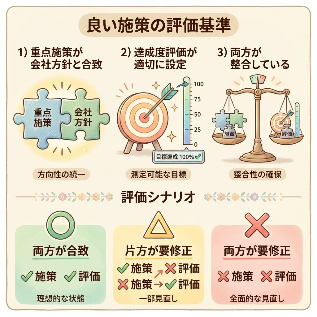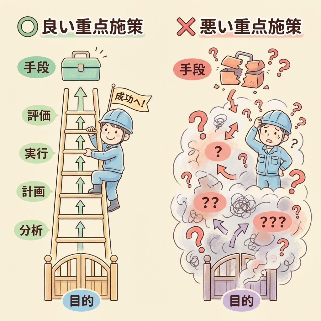 | 良い重点施策 | 目的を達成するための手段が明確 |