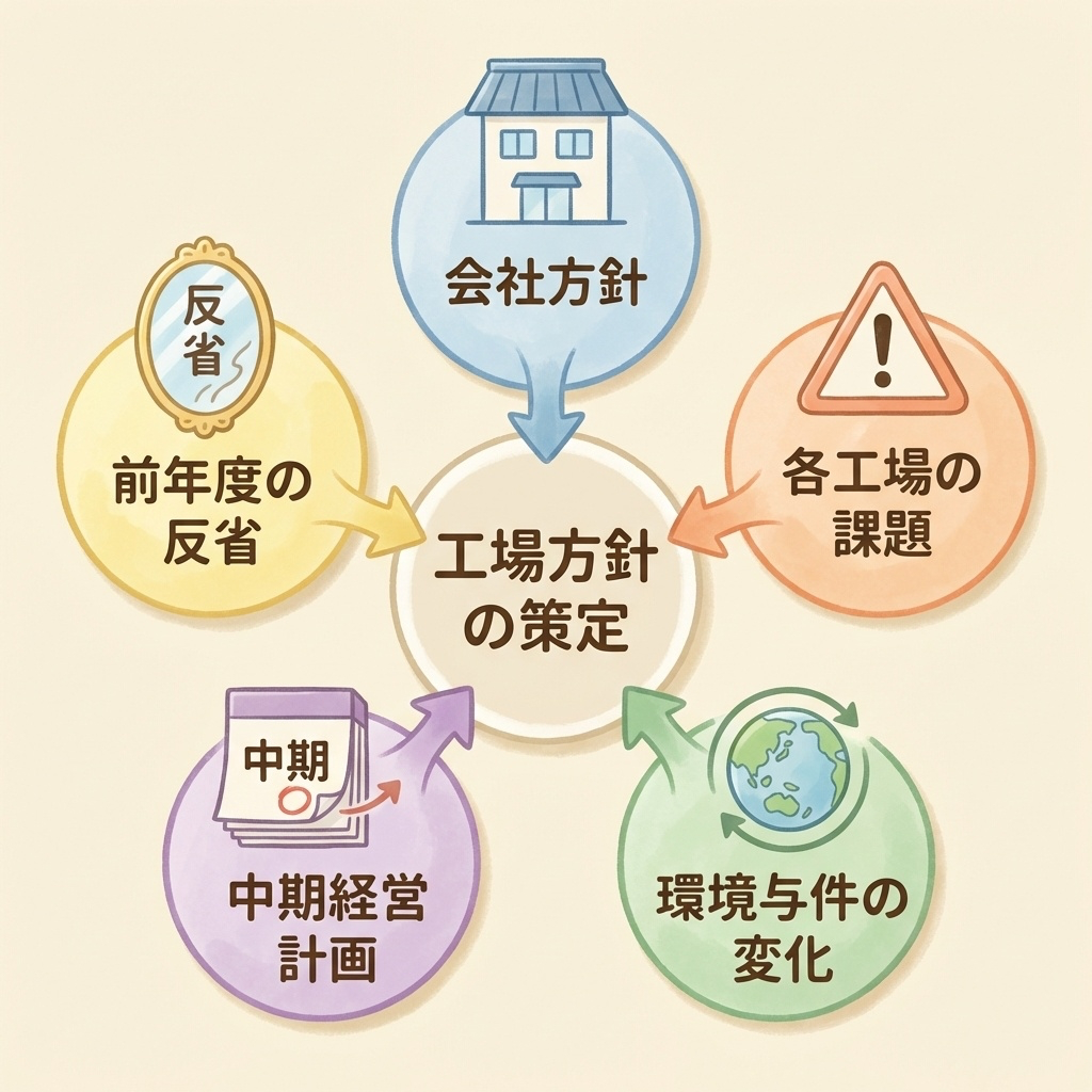 | 考慮すべき要素 | 会社方針、各工場の課題、環境与件、中期計画、前年度の反省 |