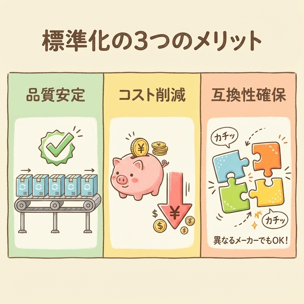 そう思うかもしれません。しかし、標準化には3つの大きなメリットがあります。