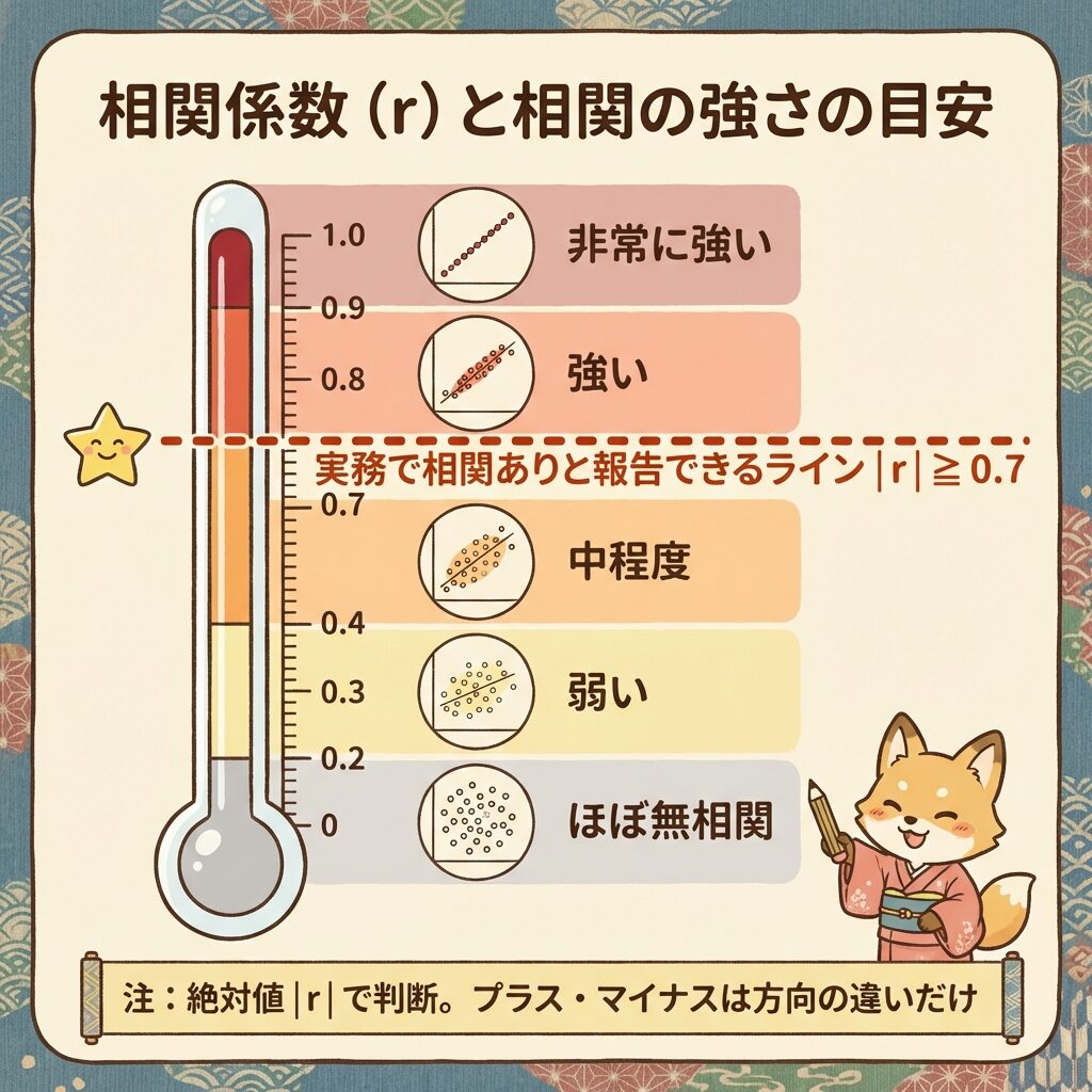 相関係数 r の強さの目安表──「0.7」は強い?弱い?