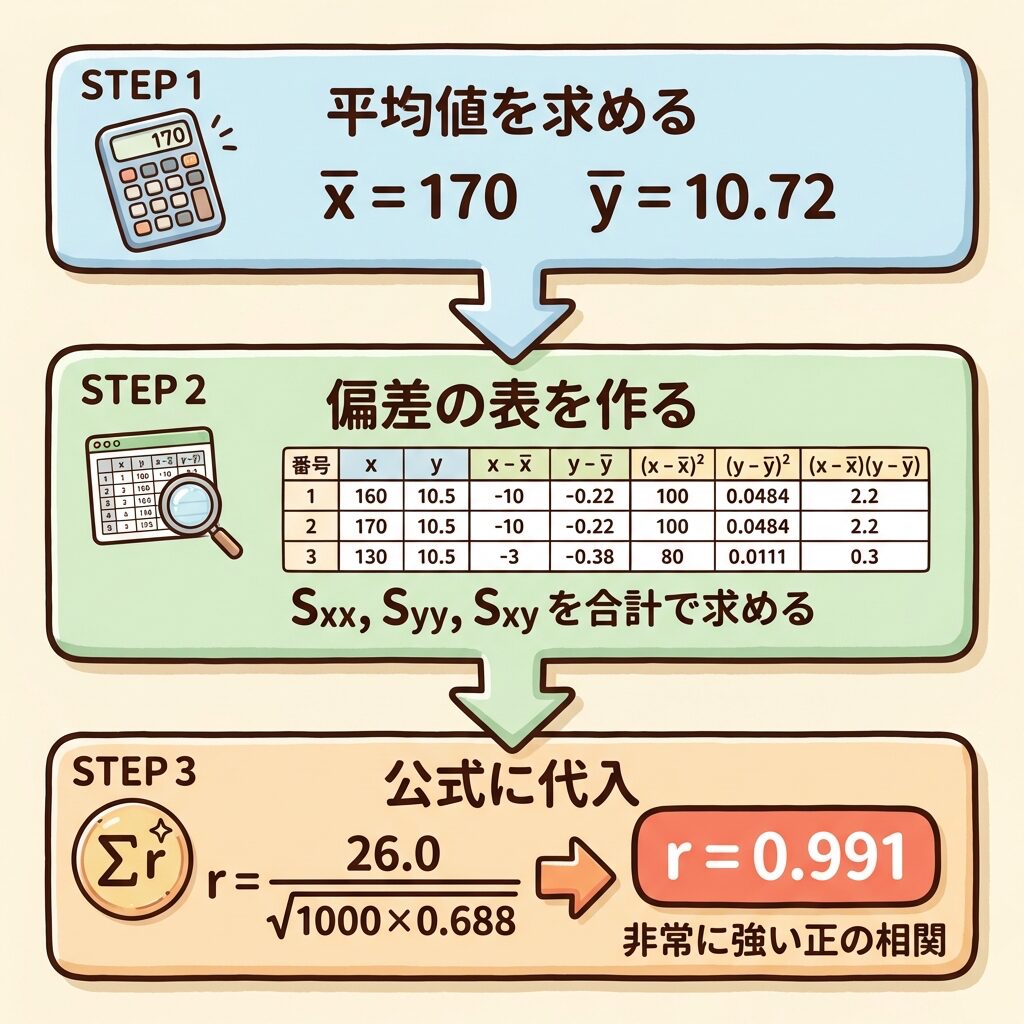 相関係数 r の計算手順──途中式を省略しない完全ガイド