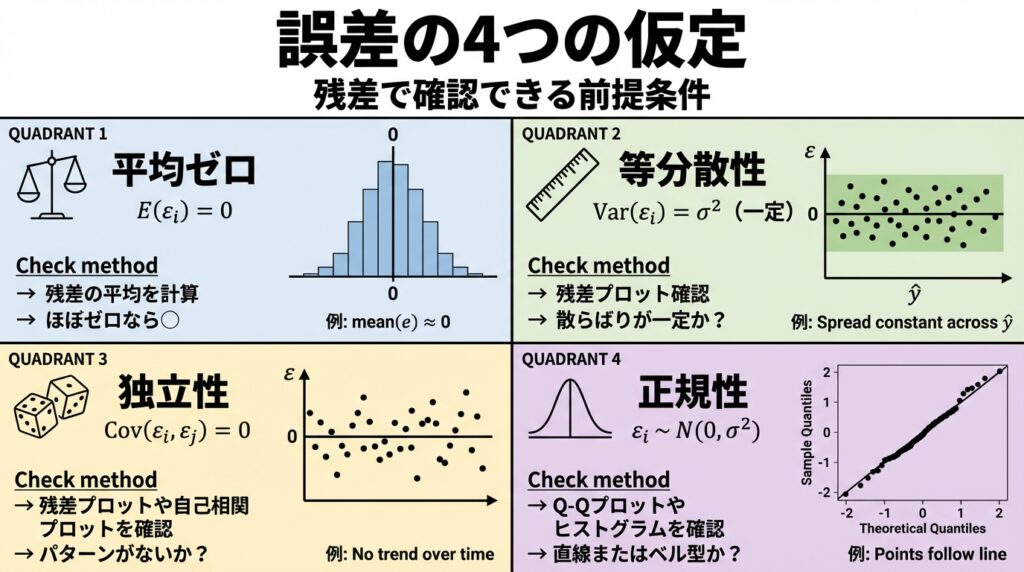 でも安心してください!残差を調べることで、誤差の性質を推測できます