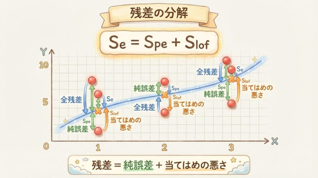 📐 残差の分解:純誤差と当てはめの悪さ