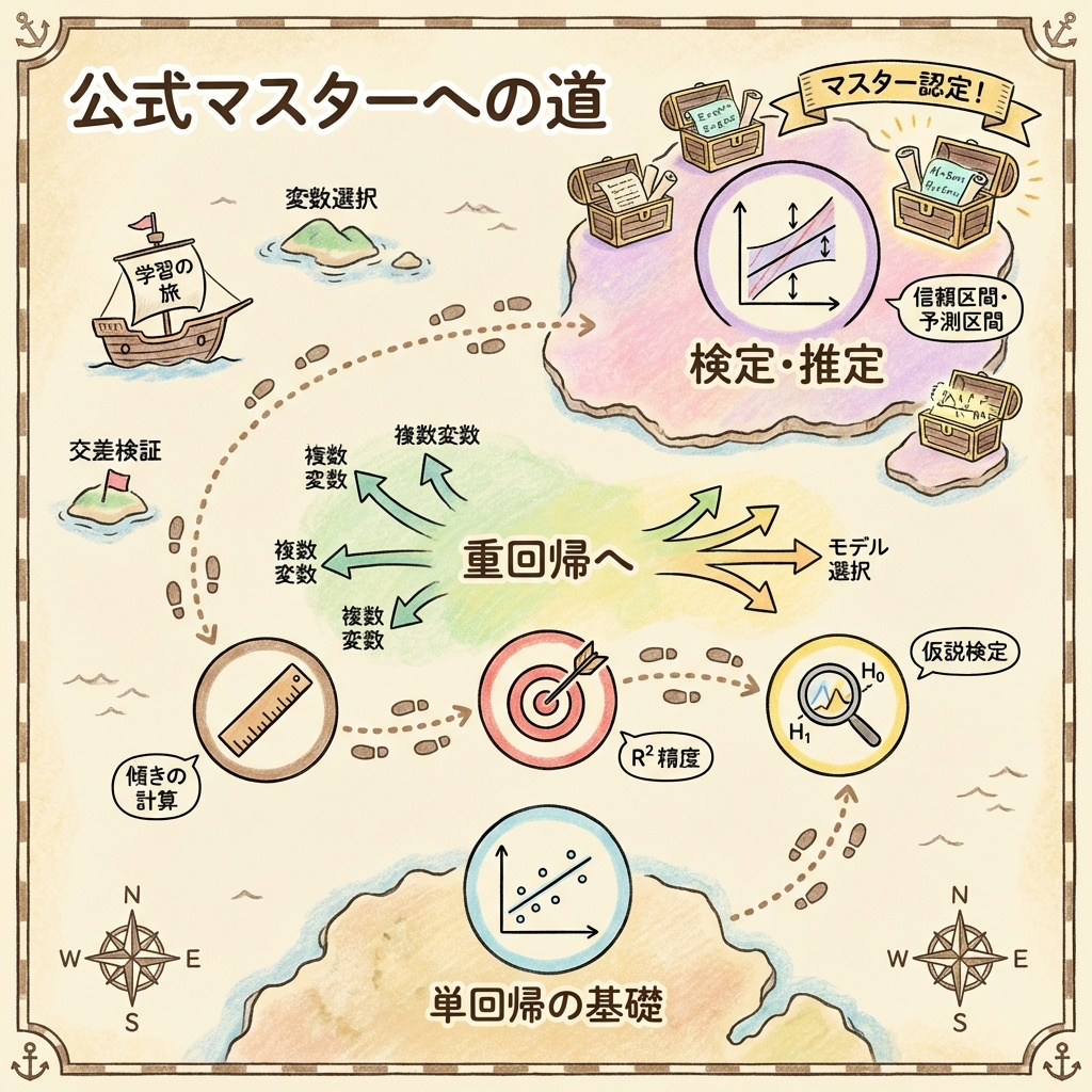 公式を効率的に学ぶには、順序が大切です。以下のロードマップに沿って学習することをおすすめします。