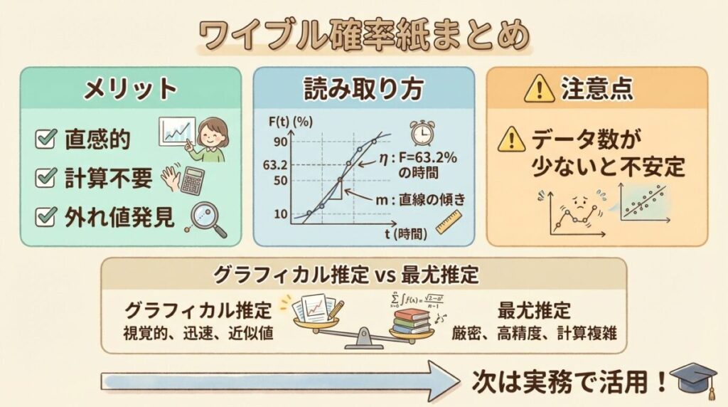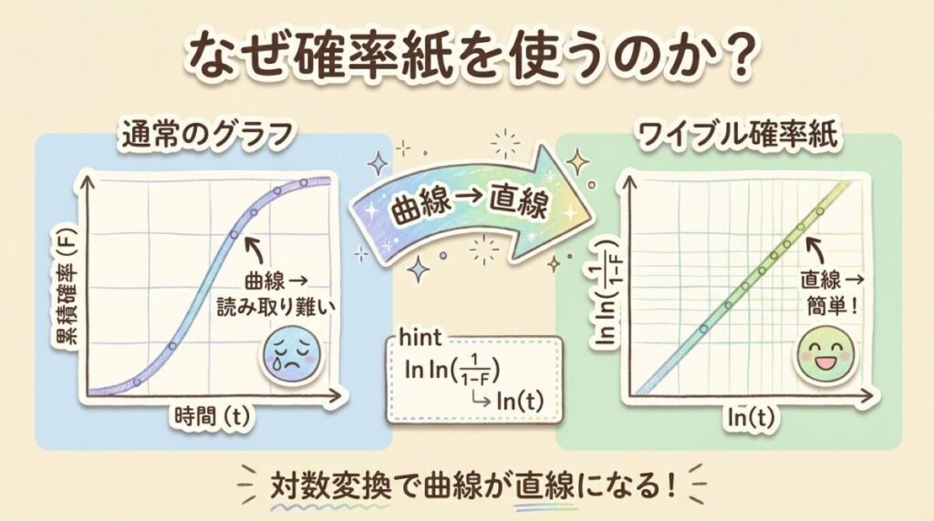 💡 ワイブル確率紙は、「故障データを直線で見える化する」強力なツールです。