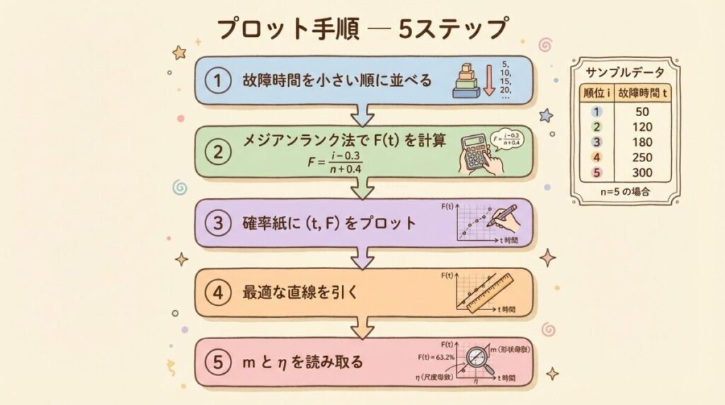 🔑 ワイブル確率紙の使い方(5ステップ)