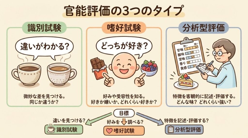 🎨 官能評価の3つのタイプ|目的で使い分けよう