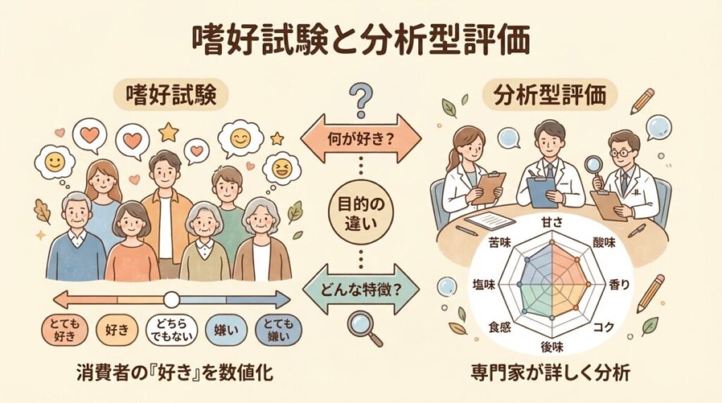 - 🤔「識別試験」「嗜好試験」…種類がありすぎて、どう使い分けるの?