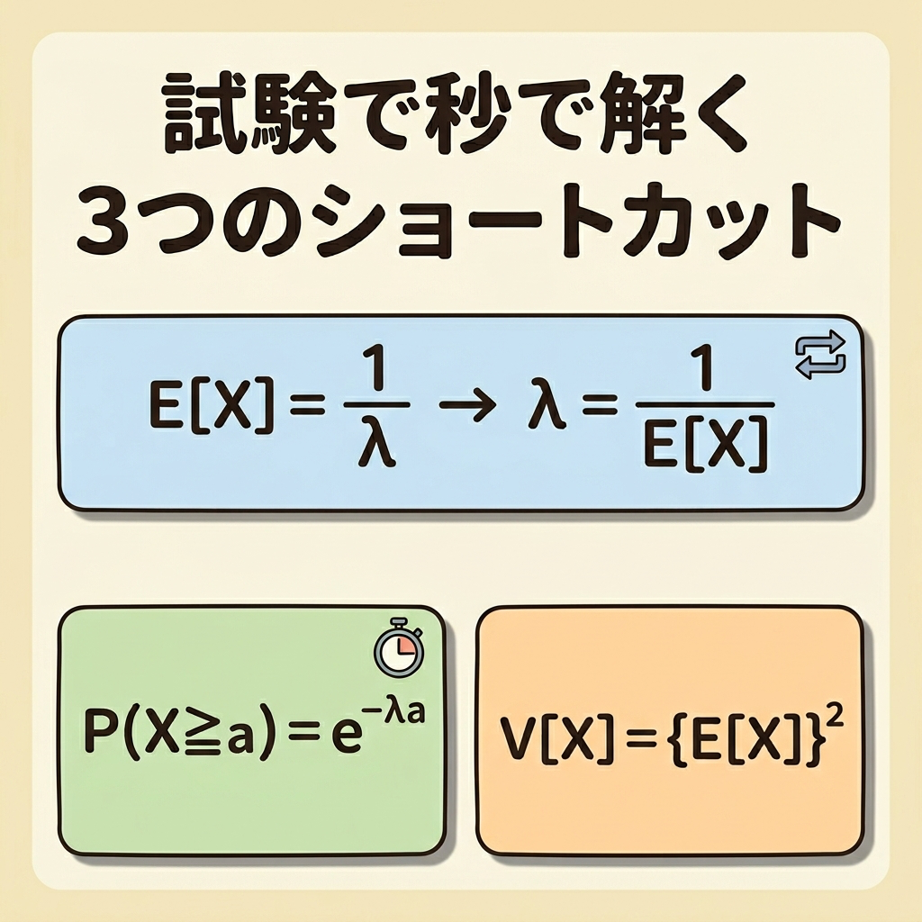 💡 「E[X] = 1/λ → λ = 1/E[X]」の逆算がキモ